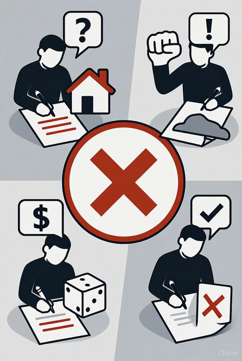 Ý chí: Việc giao kết không hoàn toàn tự nguyện, bị nhầm lẫn, bị lừa dối, đe dọa, cưỡng ép.Ví dụ: Bị ép ký giấy bán đất dưới sức ép đe dọa.
