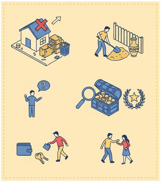 Giữ nguyên hiện trạng: Không di chuyển, làm hỏng tài sản đã tìm thấy. Thông báo ngay: