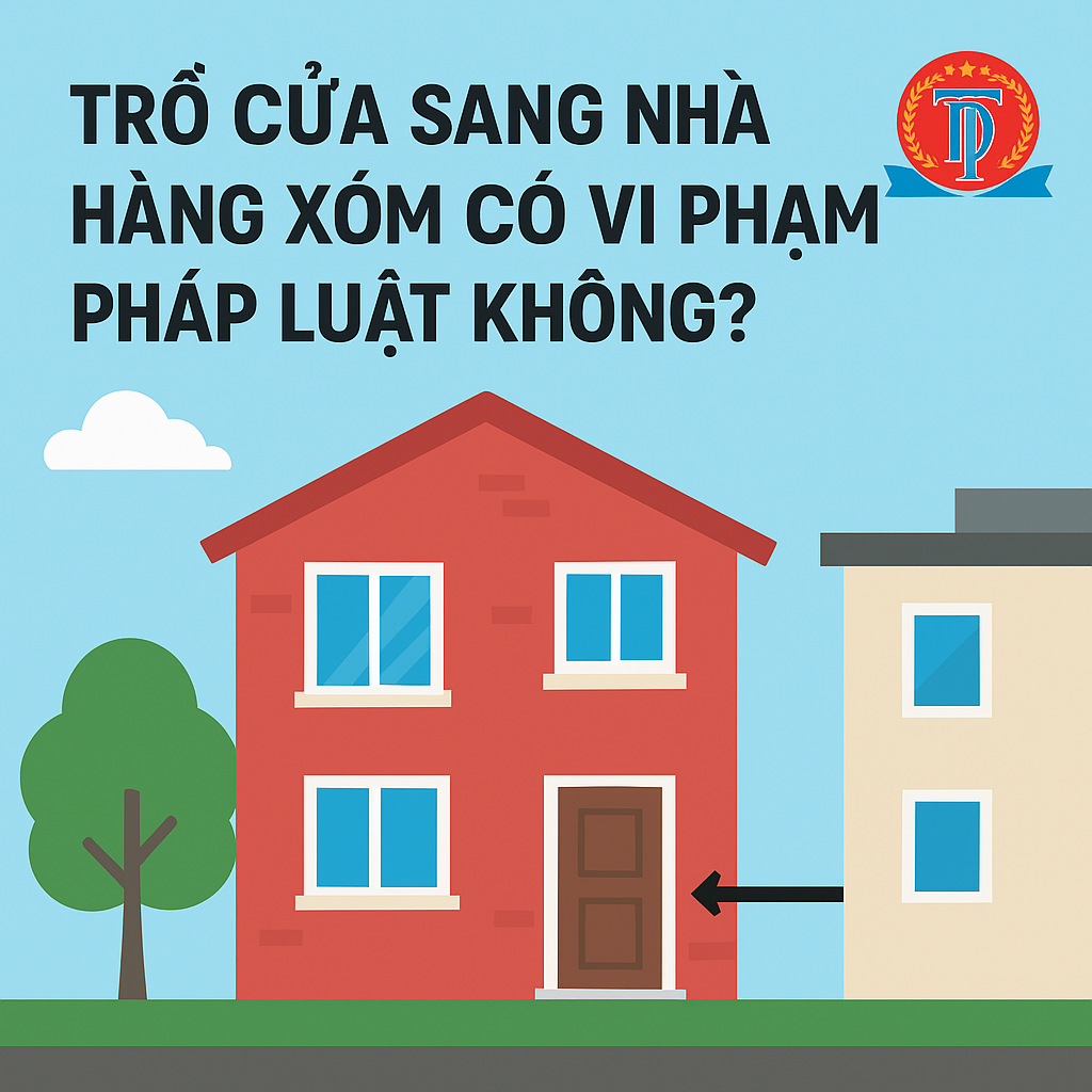 Bạn được phép trổ cửa sang nhà hàng xóm nếu tường nhà cách ranh giới lô đất liền kề từ 2m trở lên. Nếu tường nhà xây sát ranh giới, bạn không được phép mở cửa đi, cửa sổ hoặc lỗ thông gió. Trường hợp khoảng cách từ 2m trở lên, vẫn phải đảm bảo cửa không nhìn thẳng trực diện vào nhà bên cạnh, hoặc có thể làm cửa cố định (chớp lật hoặc kính chết) nếu có thỏa thuận.